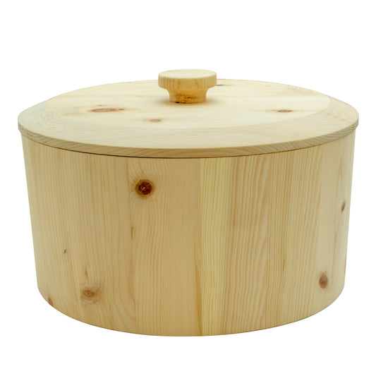 Runder Brotkasten | massives Zirbenholz | DM 35 x H 23 cm | abnehmbarem Deckel | inkl. Zirbengitter | Made in Europe