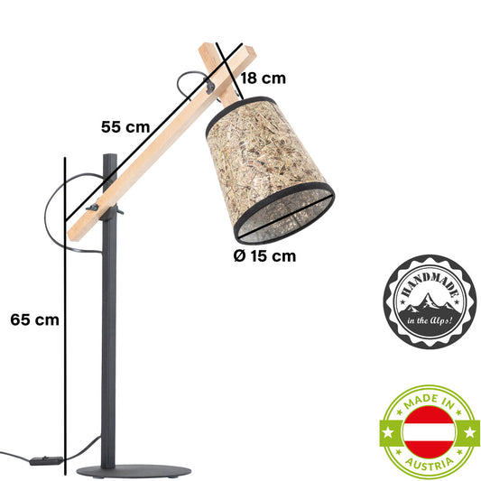 Stehleseleuchte Heu und Holz-Metallfuß konisch 22 cm DM – Handarbeit aus Österreich