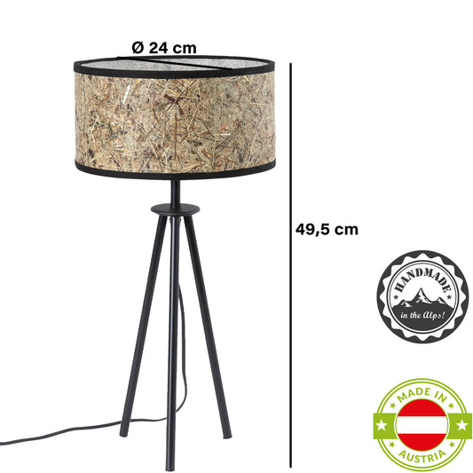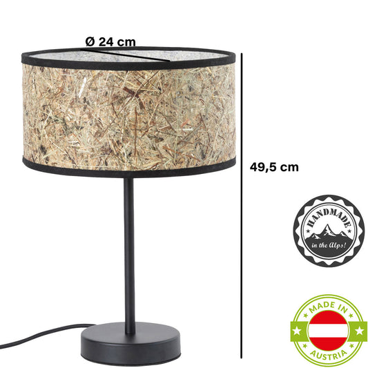 Tischleuchte Heu und Lampenfuß aus schwarzem Metall in verschiedenen Ausführungen – Handarbeit aus Österreich