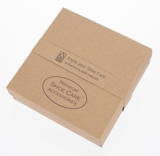 Nachhaltiges Schuhpflege-Set 'Schuhbert' | im Karton | mit 4 Bürsten, 2 Baumwolltüchern und schwarzem oder farblosem Schuhwachs