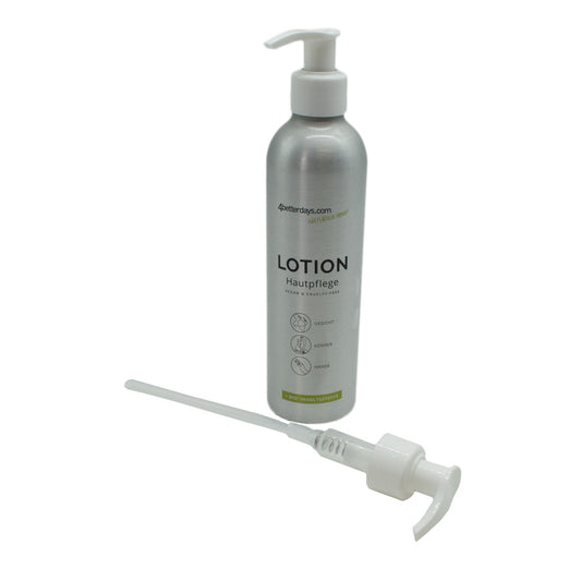 Naturliche Lotion für Körper, Gesicht & Hände | Refill-Hautpflege | für Groß und Klein | Basis-Alu-Spender | 250 ml | für Bad und Beauty Bag | Hergestellt in Österreich
