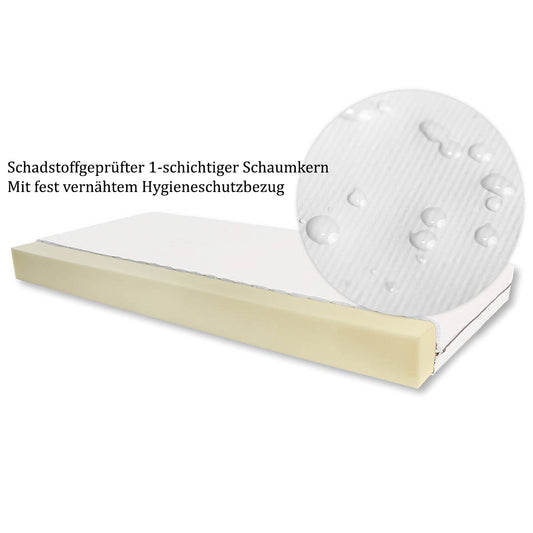 Kindermatratze mit Hygieneschutzbezug | L 140 x B 70 x H 10 cm | Härtegrad 2 | PVC- und Latexfrei | Made in Germany