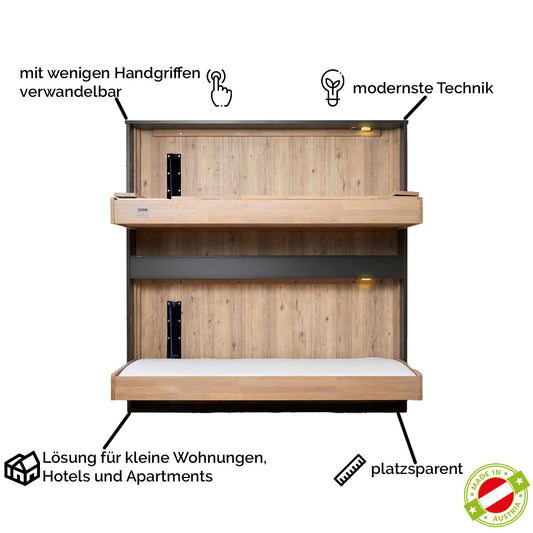 Multifunktionales Klappbett | Schrankbett | Stockbett | Sofa und Zusatzbett | inkl. Matratzen | robustes Design | TÜV geprüft | Made in Austria