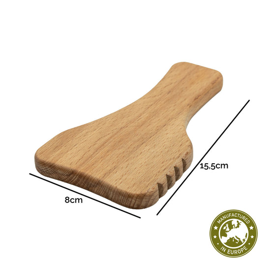 Gua Sha Madero Gesicht-Spatel | Buche massiv | 4 Kerben | Faszienschaber Massagegerät | Manufactured in Europe