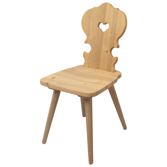 Bauernstuhl aus Zirbenholz I 'Sitwell Native' | B 41 x T 38 x H 86 cm | rustikal | Herzgriff | Schnitzarbeiten | Handwerk aus Südtirol