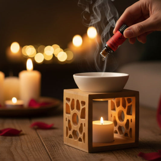 Duftlampe 'Würfel' | Holz lackiert | Keramik | Teelicht | für ätherische Öle, Räucherstövchen