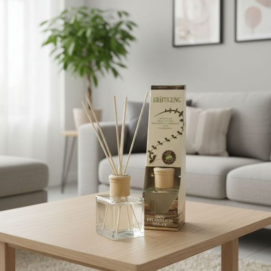 Raumduft 'Homestyle' | Glasdiffuser mit Holzkopf | naturbelassene Holzstäbchen |100 ml