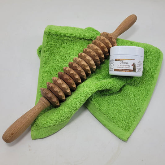 Body-Care-Set 'Muskel Wellness' | Massagerolle | Murmeltier-Salbe | Gästehandtuch | Made in Austria and Europe