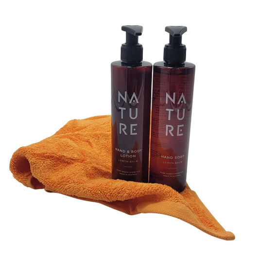 Frische-Kick-Spa-Set 'Lemon Balm' | Handseife | Hand & Body Lotion | 300 ml | Gästetuch