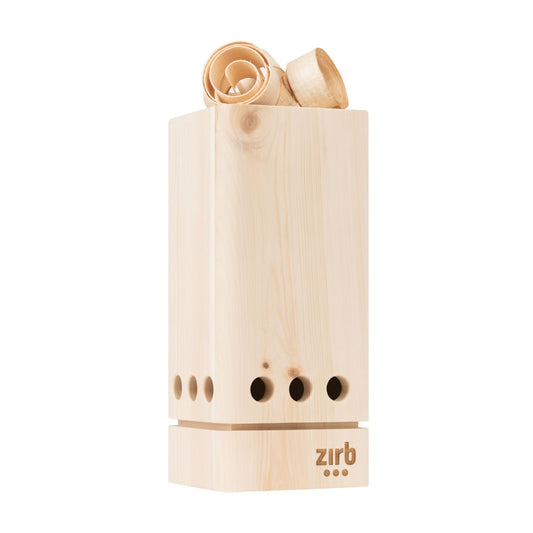Raumlüfter 'Luft' | 2 x Essenz-ÖL 30 ml | Zirbenlocken 250 g | L 16 x B 16 x H 40 cm | bis 30 m² | Zirbenholz | Netzstecke inkl. Kabel | Made in Austria