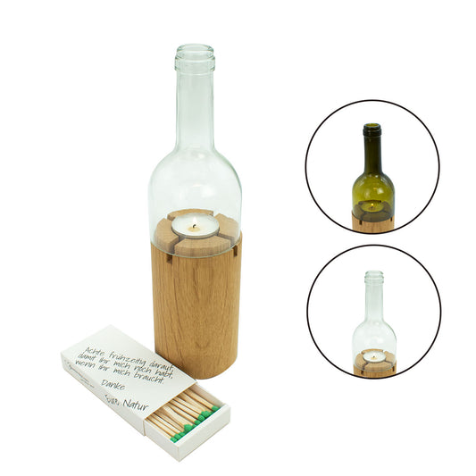 Teelichhalter 'Zündkerze' | inkl. Feuerzeug im Versteck | Eiche | B 5 x T 5 x H 14 cm | Made in Germany