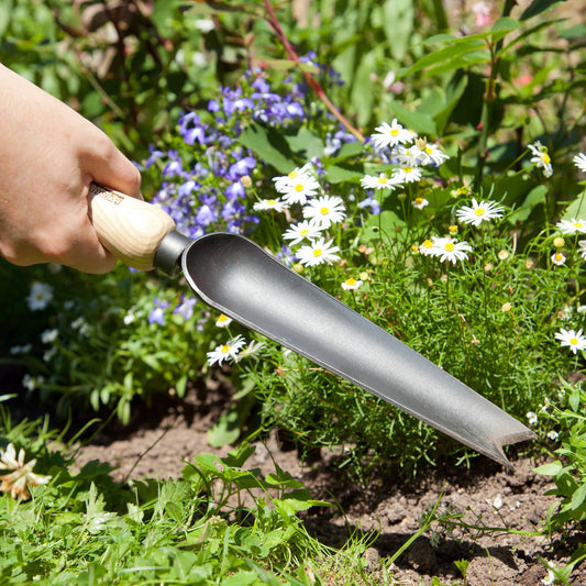 Unkraut- und Jätekelle mit ergonomischem Eschenholzstiel und Schaufel aus Schwedenstahl - Echte Handarbeit aus Deutschland
