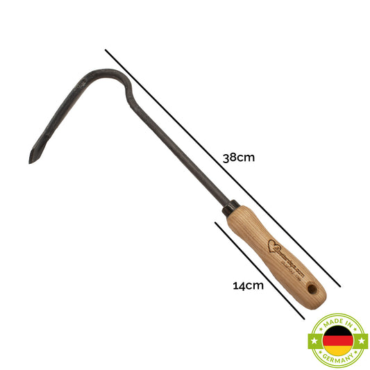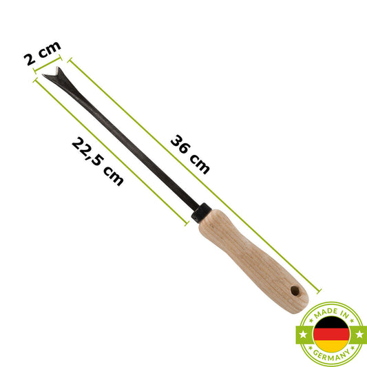 Unkrautstecher mit Eschenstiel Grifflänge: 14 cm Gesamtlänge: 36 cm Gewicht: 200 gr handgeschmiedet in Deutschland
