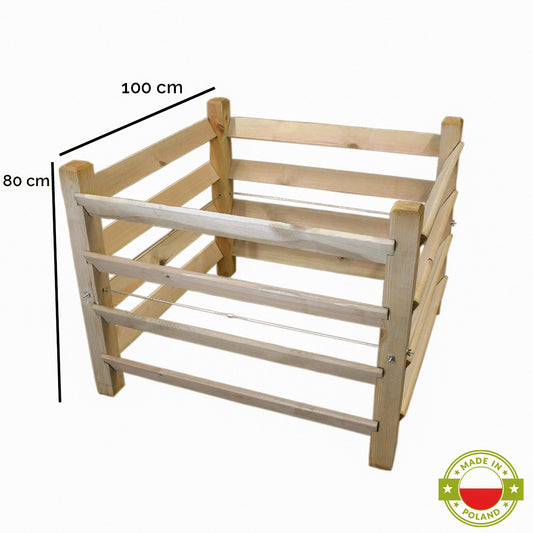 Holzkomposter 'Maximum Nature' | massive Kiefer | B 100 x L 100 x H 80 cm | mit Metallstangen fixiert | Made in Poland