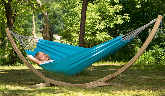Hängemattengestell Madera | für Garten oder Camping | Höhe ca. 165 cm | wetterfestes Eschenholz | Belastbarkeit max. 100 kg | Made in Germany