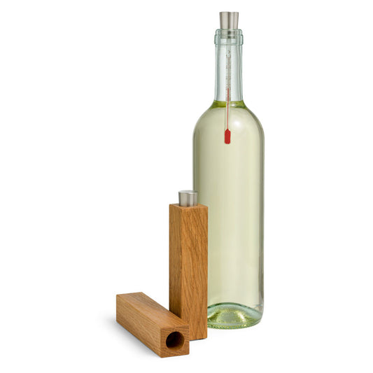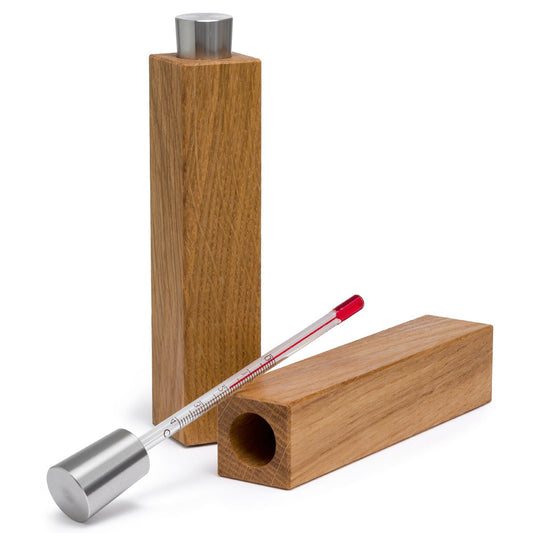 Weinthermometer | Eiche Geölt | Edelstahl und Glas | DM 3 x H 14,5 cm | Made in Germany