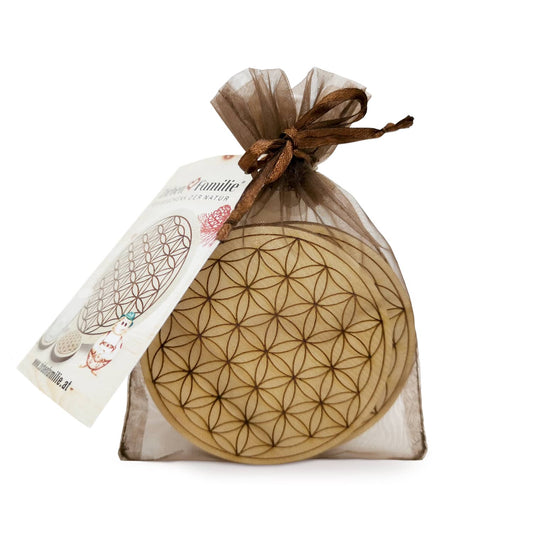 2er-Set Untersetzer ZirbenBlume | für Wasserkaraffe | Ø 80 mm | Zirbenholz
