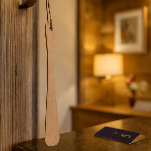 Robuster Schuhlöffel aus Buchenholz mit Lederband | langstielig | 370x34x11 mm | Made in Germany
