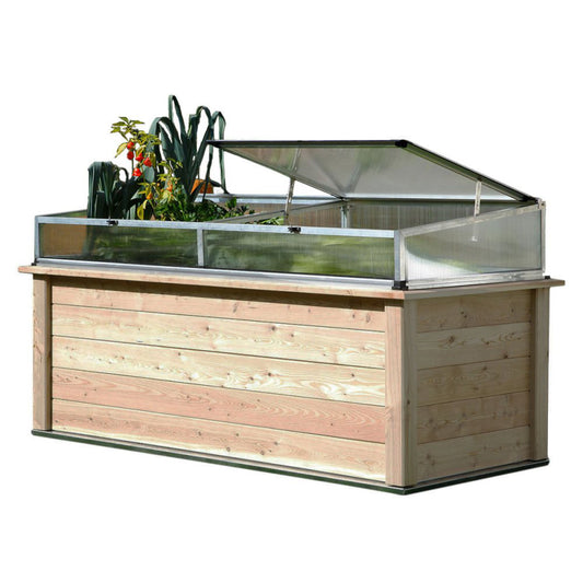 Hochbeet | regionale Gebirgslärche | inkl. Frühbeetaufsatz | mit automatischem Fensteröffner | L 125/206 x B 92 x H 80 cm | inkl. Nagegitter + Noppenfolie | Made in Austria