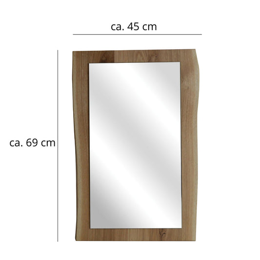 Spiegel | 'Baumkante' | B 45 x H 69 x T 3,5 cm | Eiche massiv | 2 x geölt | Eisenkuven schwarz | Made in Austria