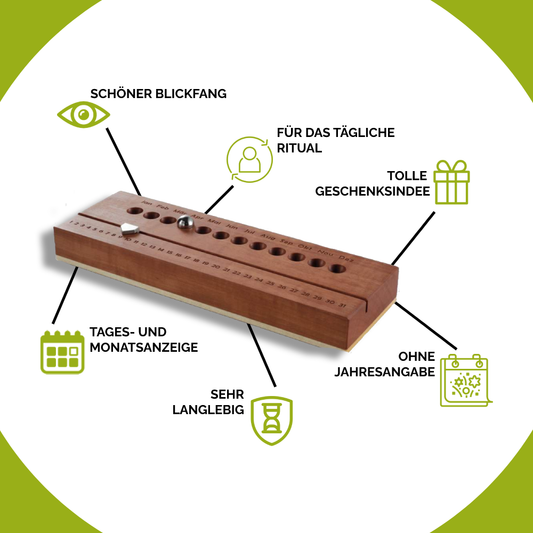Hochwertiger Vollholz Kalender 'Classy' | verschiedene Holzarten | Tages- und Monatsanzeige | immerwährend ohne Jahresangabe | L 18,6 x B 6,2 x H 2,2 cm | Handgemacht in Deutschland