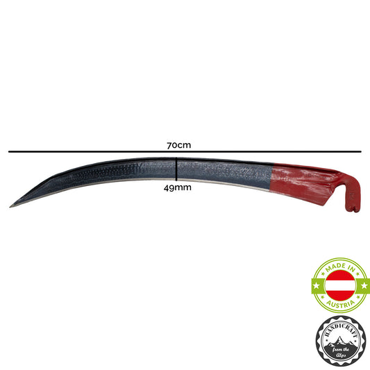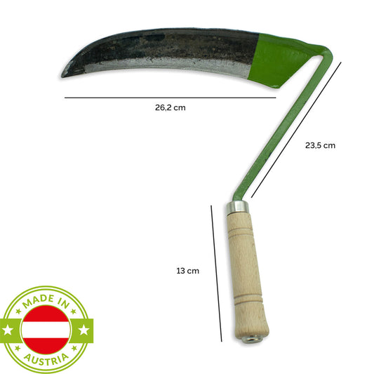 Blattsichel mähfertig gedengelt mit integrierter Aufhängung - inkl. gratis Schleifstein - mit Buchenholzstiel - Rechtshänder - Made in Austria