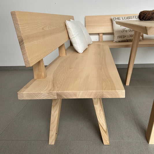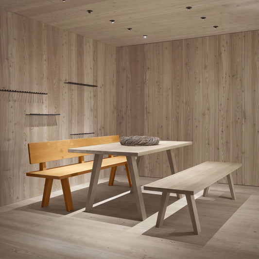 Schlichte Massivholzbank mit Lehne 'Simple' | L 100 oder 200 x T 53 x H 84 cm | in verschiedenen Holzarten | stabile Handarbeit aus Südtirol