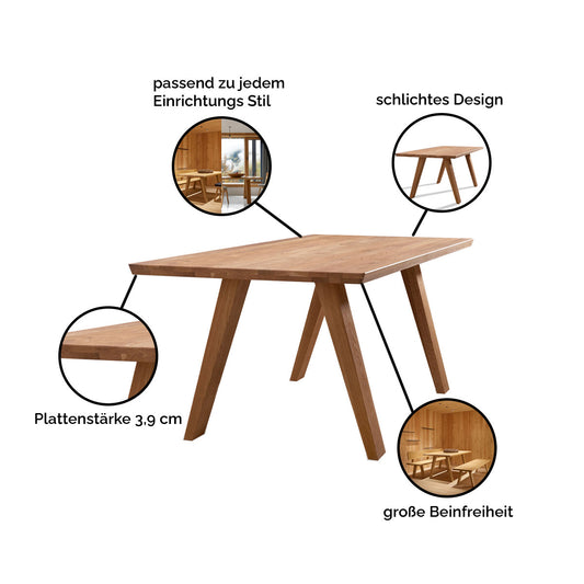 Massivholztisch 'Simple' | L 160 oder 200 x T 90 x H 76 cm | Fichte, Buche, Zirbe oder Eiche | stabile Handarbeit aus Südtirol