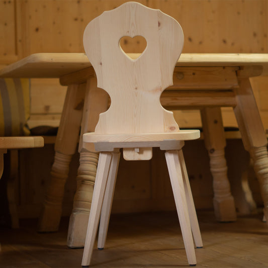 Kinder Sitzgruppe ‘Sweetheart’ | Zirbenholz roh | 1 Tisch L 70 x B 70 x H 63 und 4 Stühle B 30 x T 28 x H 63 cm | Made in Südtirol