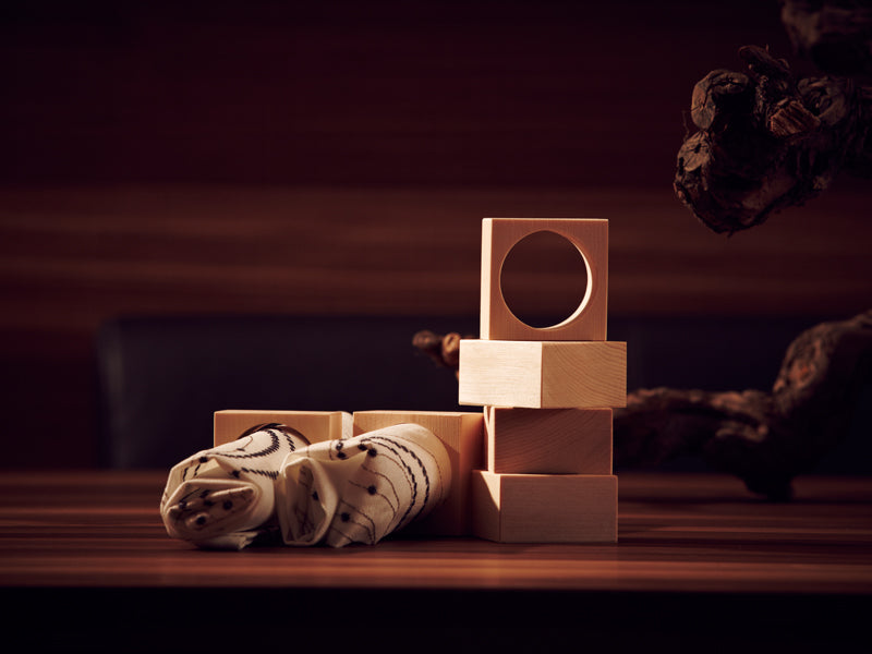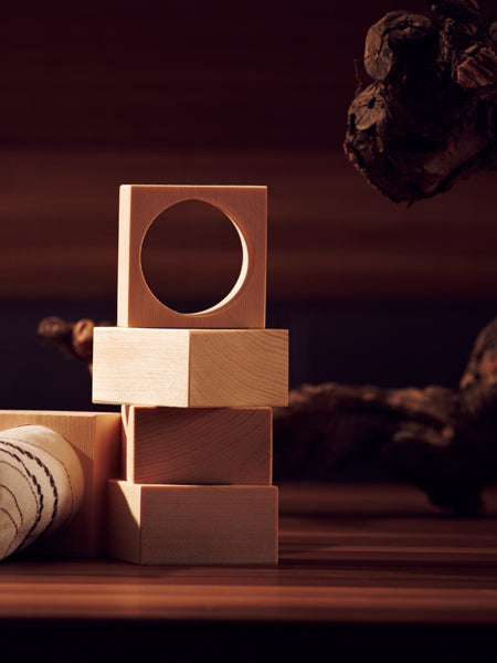 Zirbenserviettenring quadratisch, unbehandelt, 5,5 cm x 5,5 cm x 3 cm mit Bohrung 4,5 cm