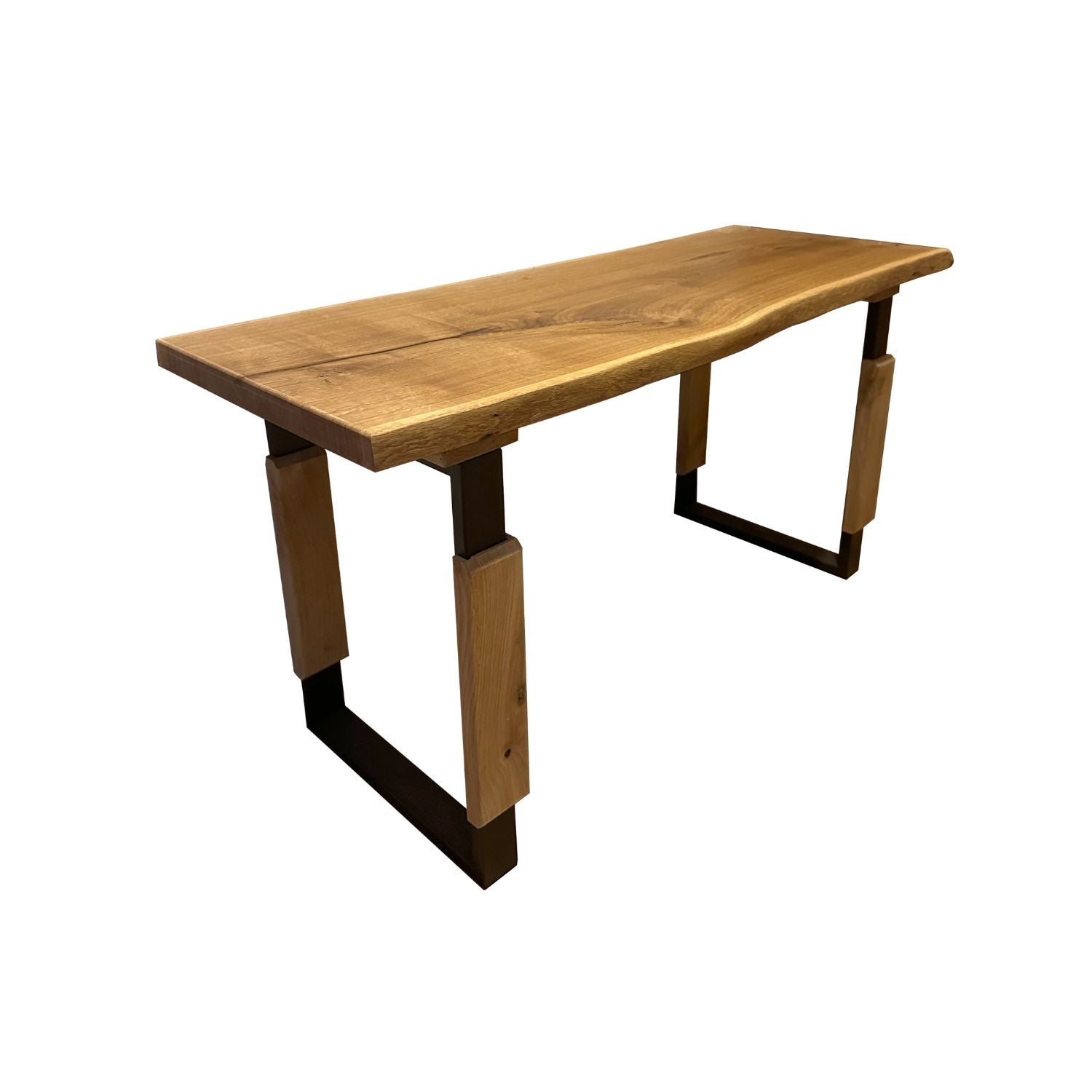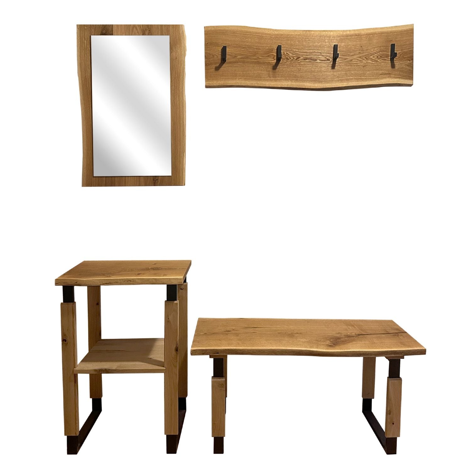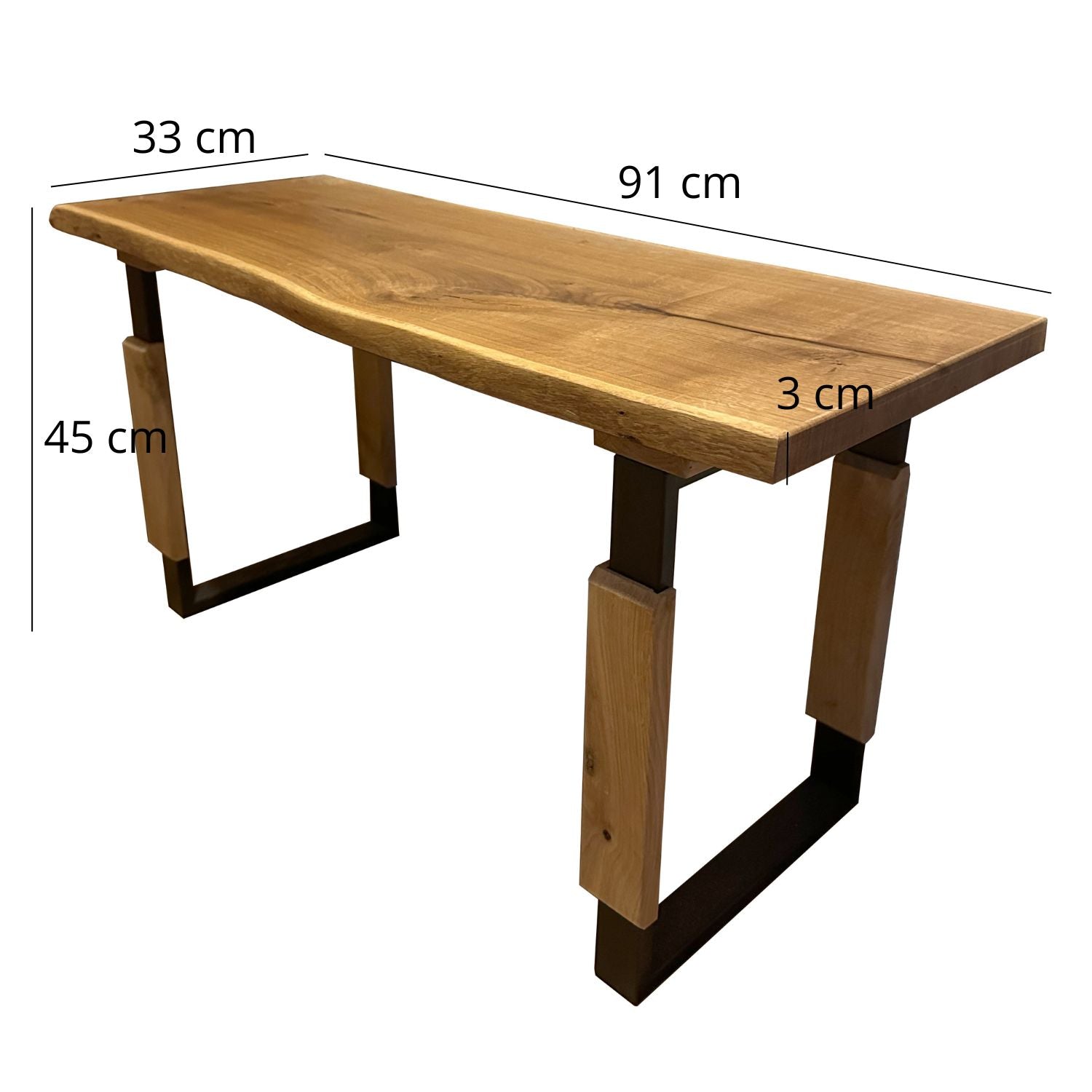Durch die Verwendung von Eichen Massivholz mit Baumkanten und einem schwarzen Metallgestell erhalten die Möbelstücke einen rustikal-modernen Charme, der perfekt in jedes Zuhause passt.
