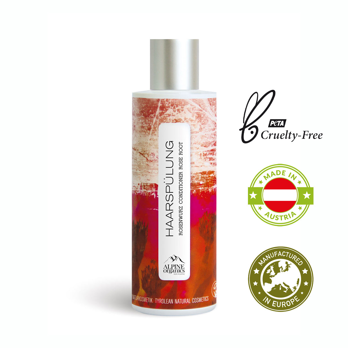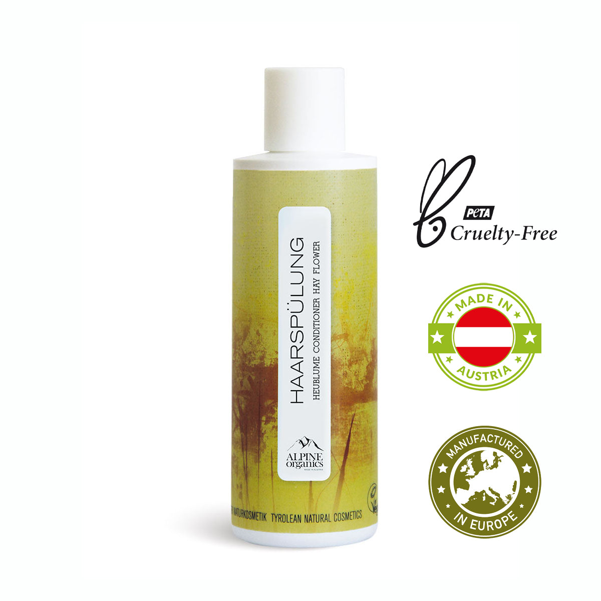 Die Haarspülung ‘Alpine Organics’ ist ein Naturkosmetikprodukt aus Österreich. Die natürliche Haarspülung verleiht dem Haar mehr Geschmeidigkeit und verbessert deutlich die Kämmbarkeit. Wertvolle Öle pflegen das Haar bis in die Spitzen und sorgen für einen seidigen Glanz. Dieses Pflegeprodukt ist 100% vegan und tierversuchsfrei. Für die verschiedensten Haartypen bieten wir die Haarspülung in den Duftnoten BIO-Zitronenmelisse, Holunderblüte, Rosenwurz und Heublume.