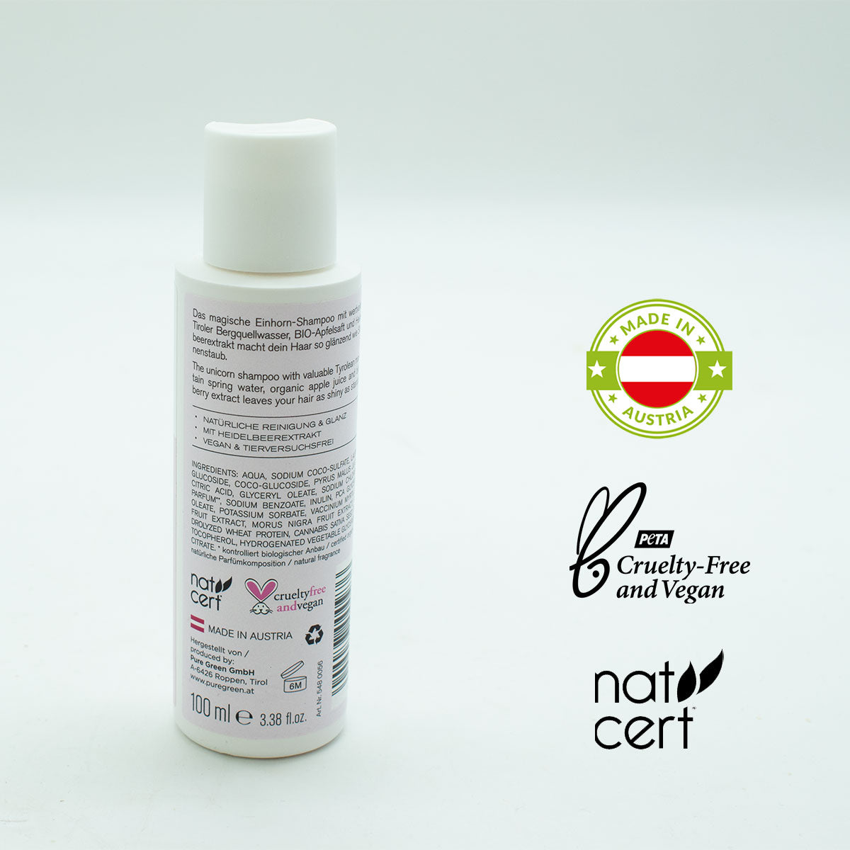 Anwendung: Ein paar Tropfen im handtuchtrockenen Haar in den Längen und Haarspitzen verteilen. Nicht Ausspülen. Geeignet für Kinder & Einhorn-LiebhaberInnen.