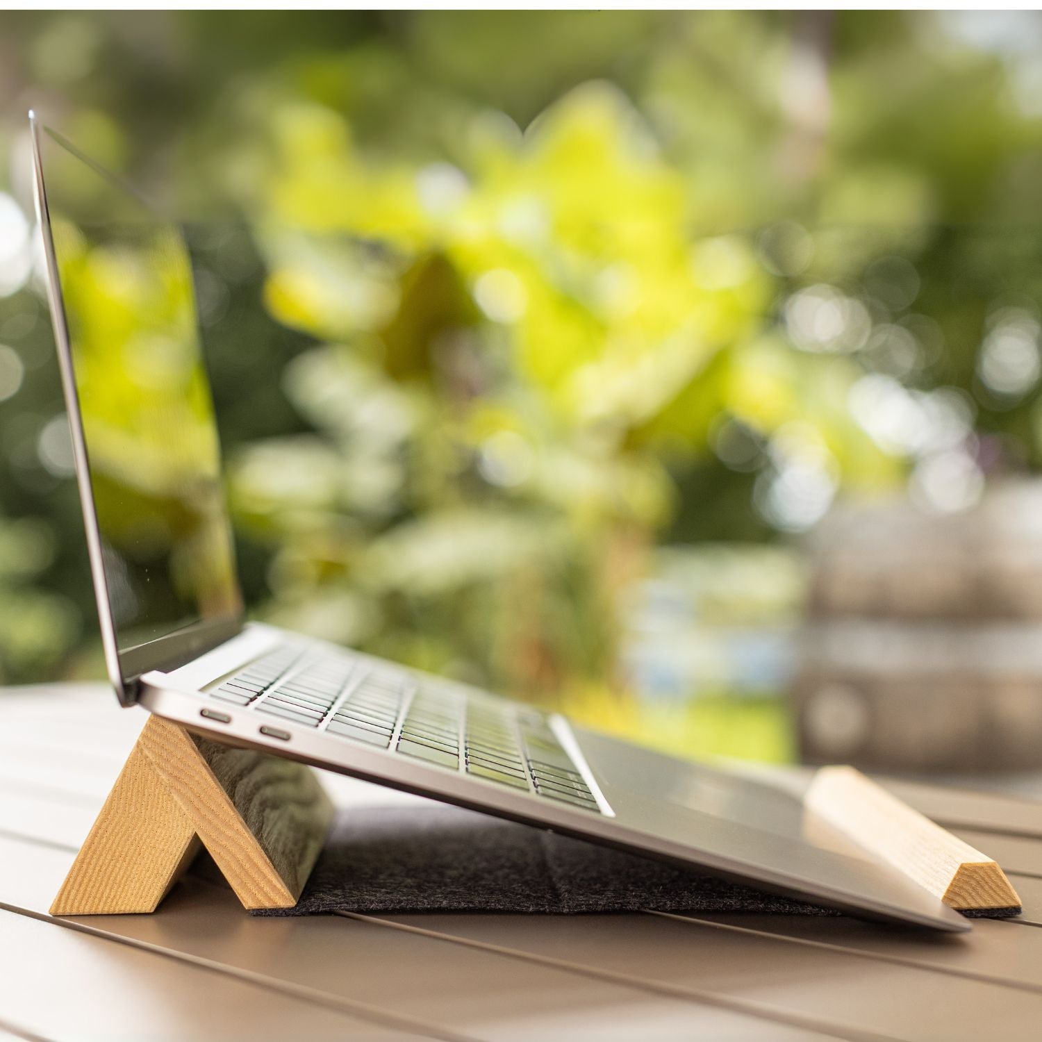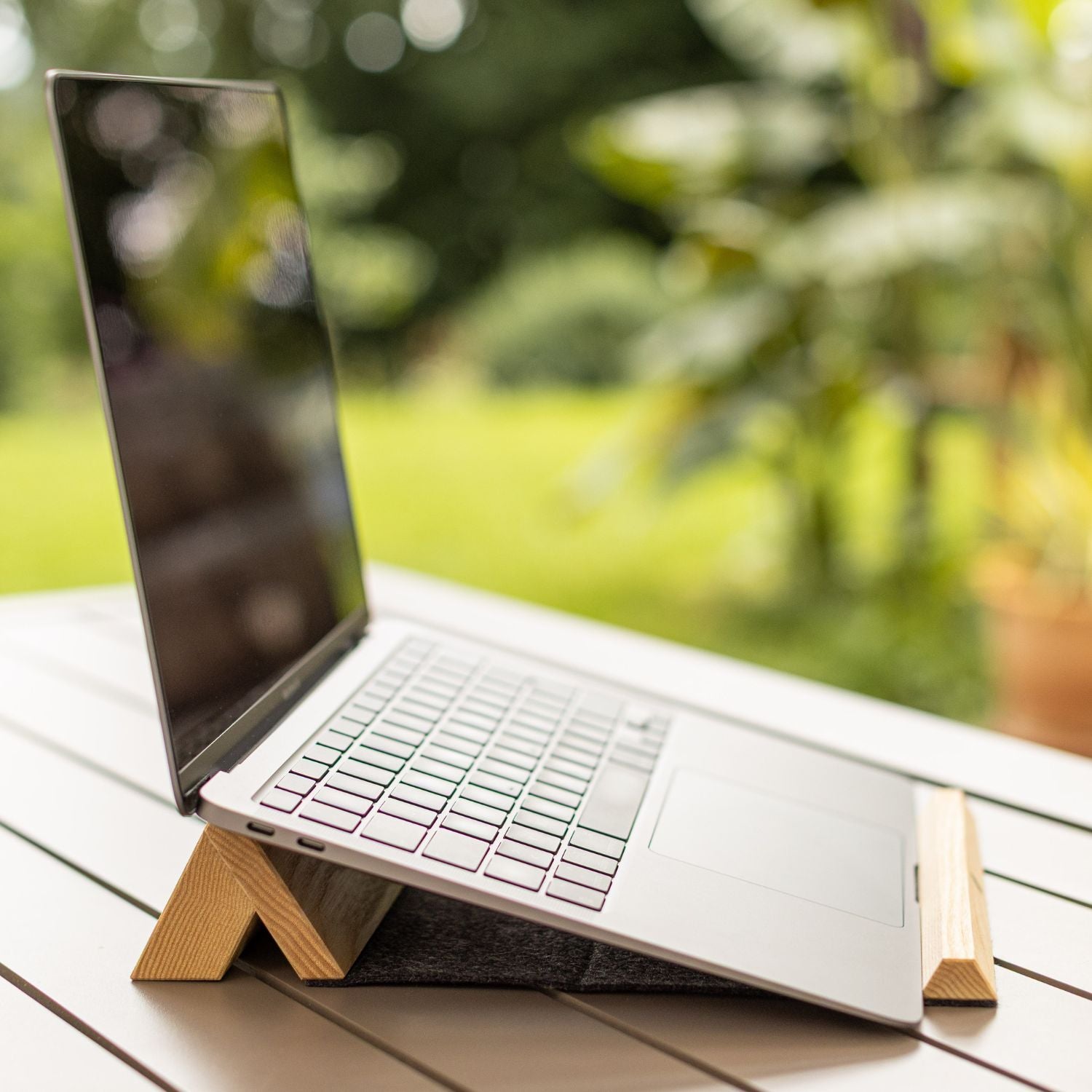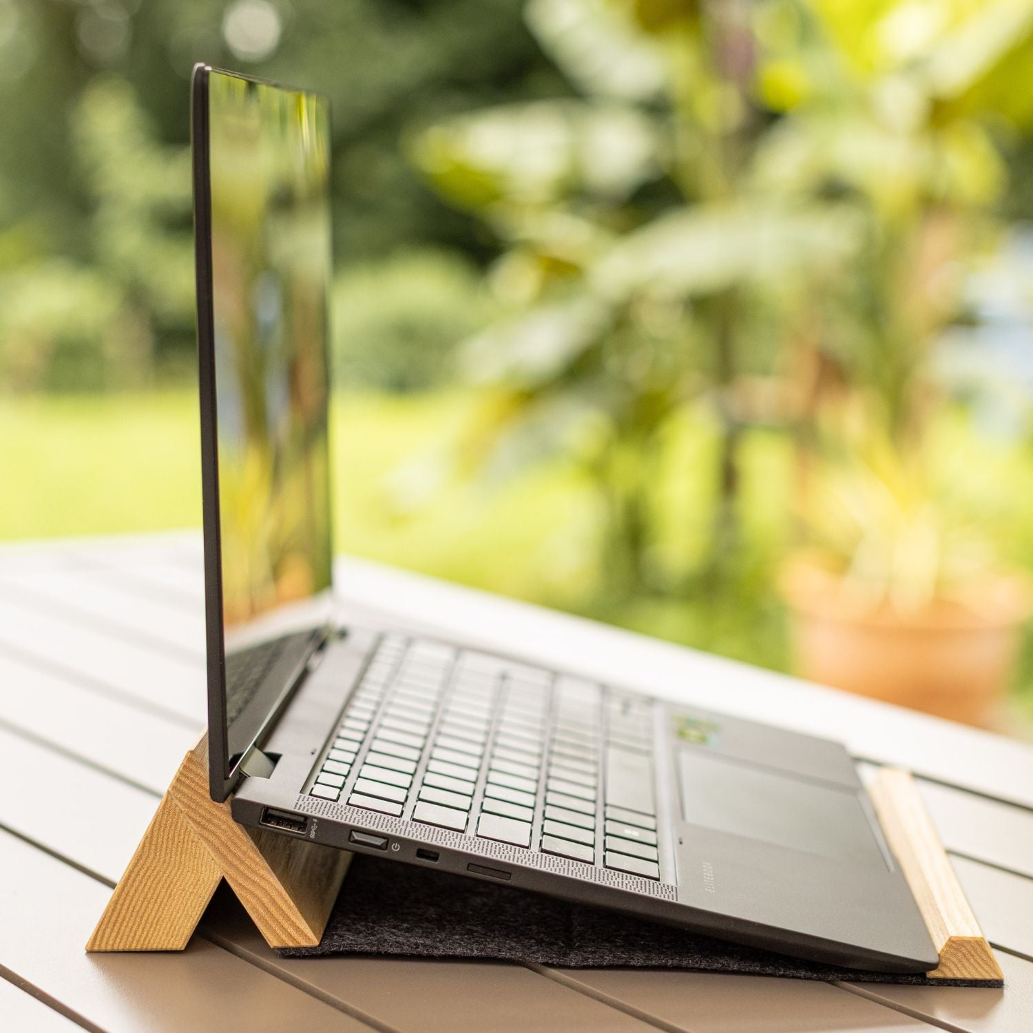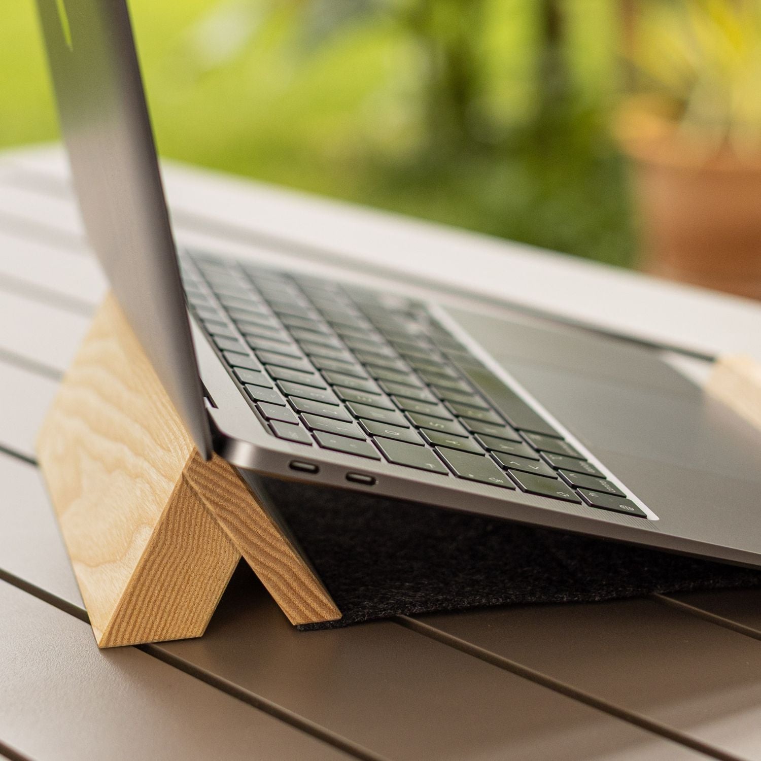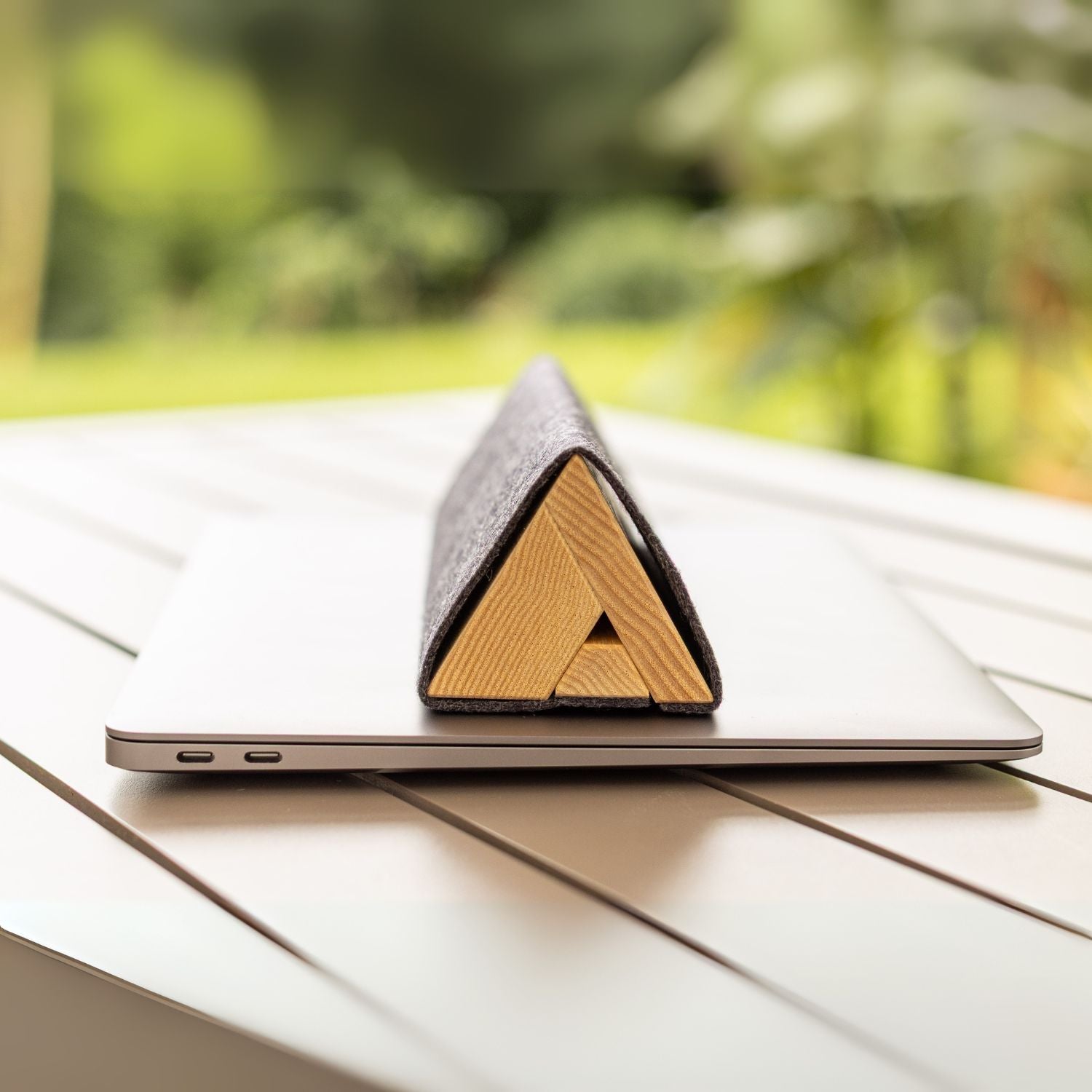 Formvollendet. Und faltbar. Dieser Laptopständer aus edlem Eschenholz ist mehr als nur praktisch – er ist ein Statement für Haltung. Ergonomisch gedacht, ästhetisch gestaltet – und im Handumdrehen zusammengeklappt. Seine klare, dreieckige Form erinnert an Designklassiker… oder an Schokolade. Nur, dass er hier deinen Rücken schont statt den Blutzuckerspiegel zu steigern. Ob am Schreibtisch, im Coworking-Space oder auf dem Küchentisch: Er hebt den Laptop und fördert die Luftzirkulation des Gerätes.