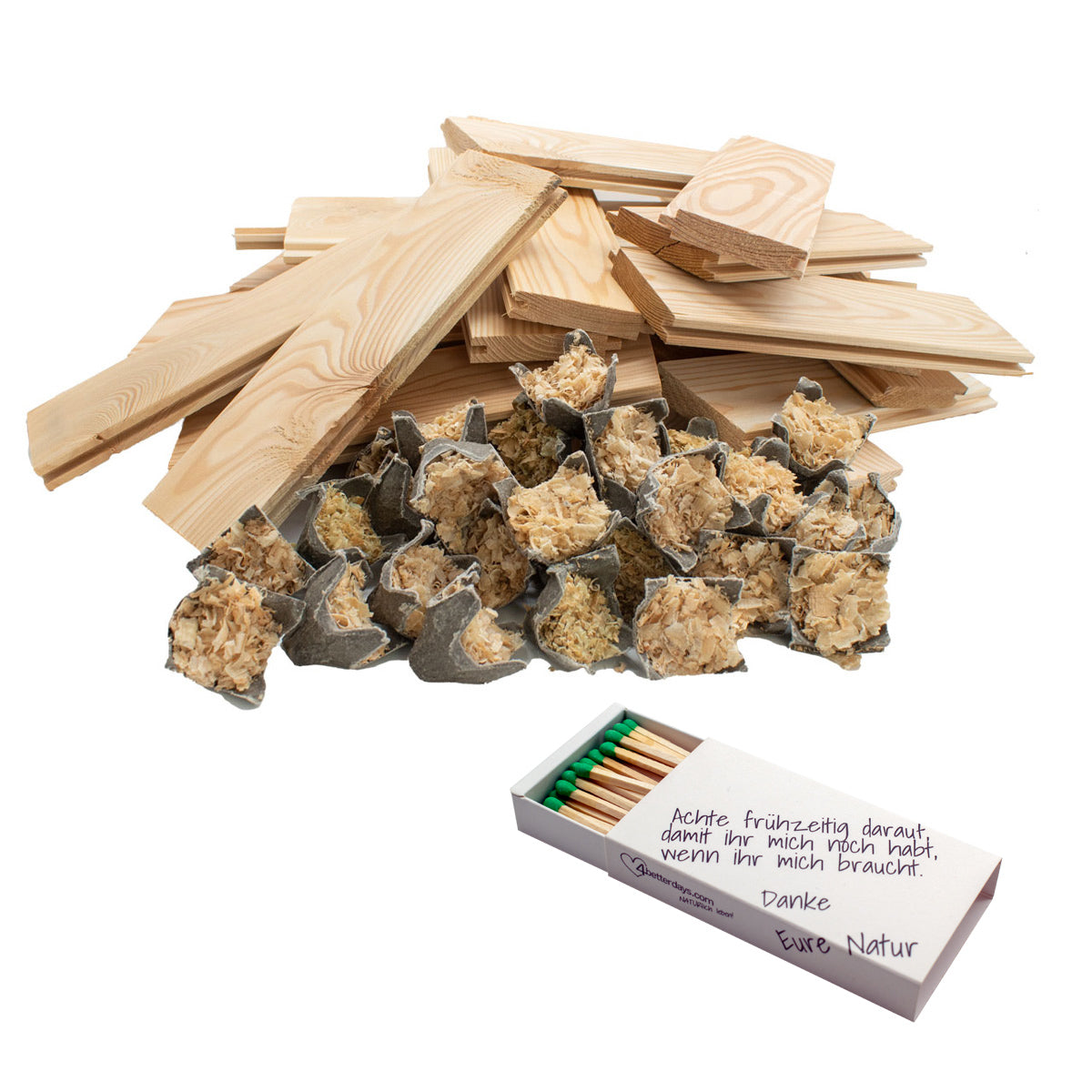 - ca. 150 Stück Öko-Anzündpellets aus gepressten Sägespänen