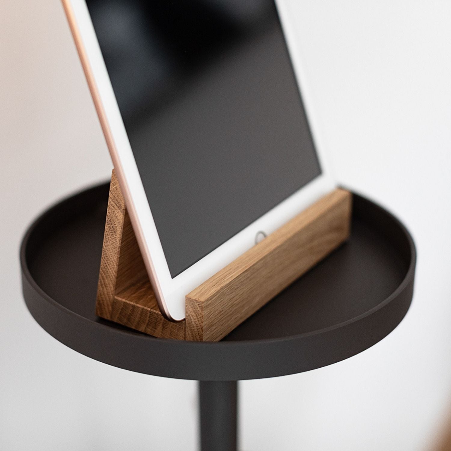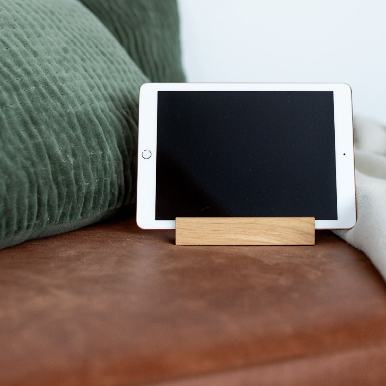 Einfach praktisch und sieht gut aus: Ob zum Lesen, Streamen oder Kochen – mit diesem Halter aus Eichenholz ist das Tablet immer in der richtigen Position. Bei allen wichtigen Tätigkeiten ist das Eichenholztablet immer in der richtigen Position. Der nachhaltige Violan-Filz auf der Unterseite des Ständers schont Oberflächen, schützt vor Kratzern und lässt den Ständer nahezu geräuschlos abstellen und verschieben.
