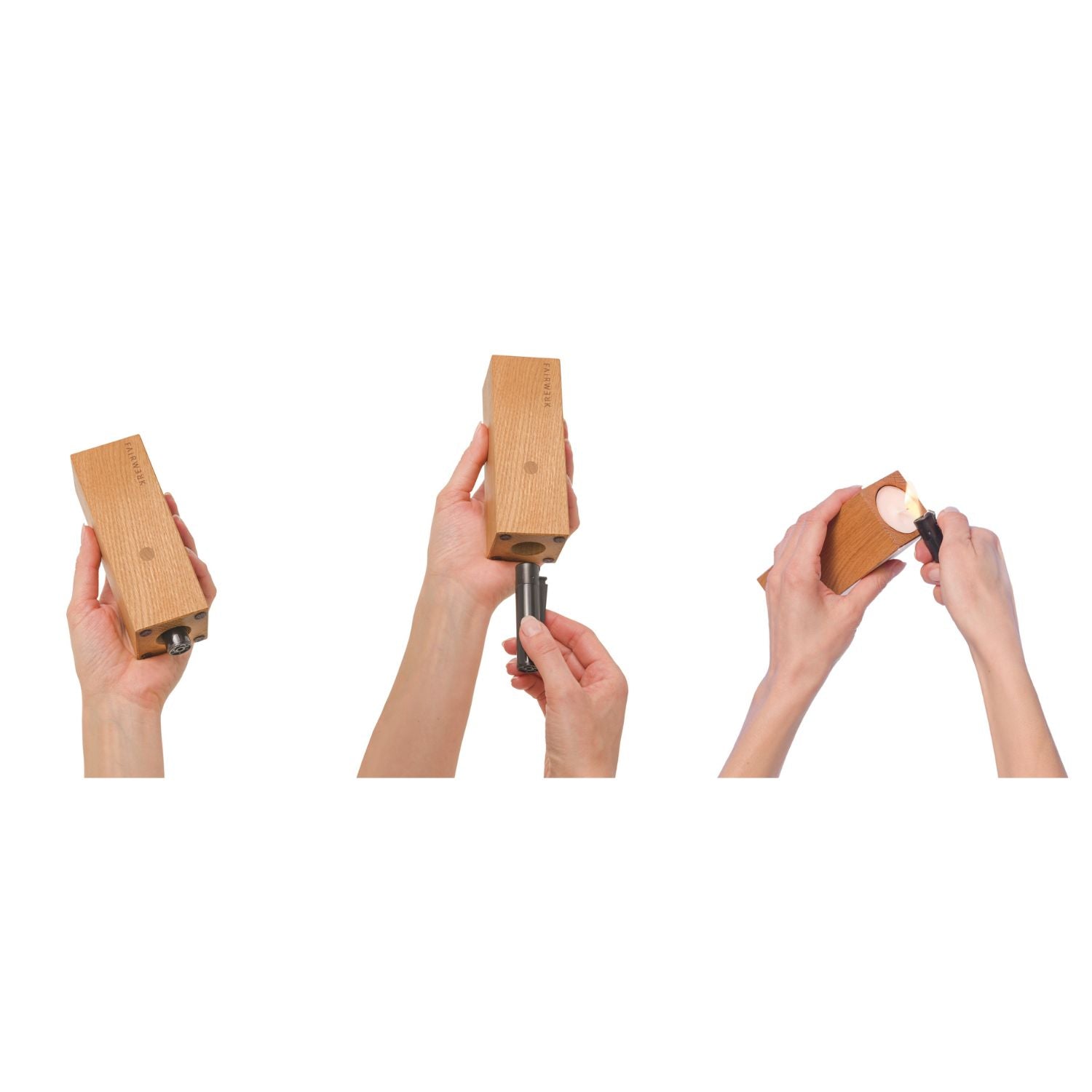 Auf den ersten Blick wirkt die Zündkerze einfach wie ein formschöner Teelichthalter. Das Besondere: Mit einem Augenzwinkern verbirgt sie in ihrem Inneren ein Feuerzeug, das immer zur Hand ist. Einfach den Teelichthalter anheben und schon rutscht das Feuerzeug ca. 1,5 cm heraus.
