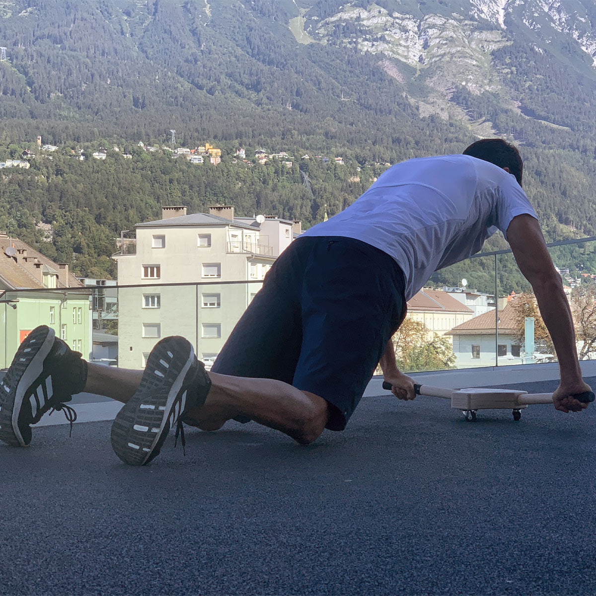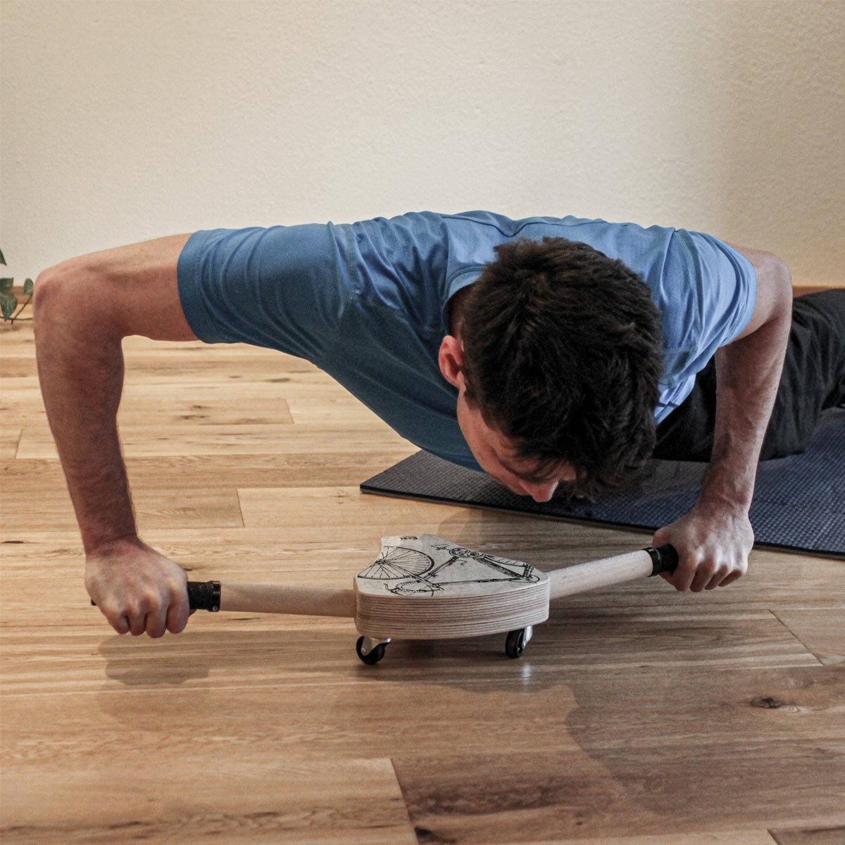 Dieser Core-Bike-Trainer ist speziell für den Mountainbike- und Radsport entwickelt und hat die Griffbreite eines Fahrradlenkers um somit das perfekte Stabilisationstraining für Downhill- und Mountainbike bereich zu simbolisieren. Die montierten Rollen an der Unterseite ermöglichen die Bewegung in alle Richtungen. Neben hoher Effiktivität sorgt der Fitnesstrainer