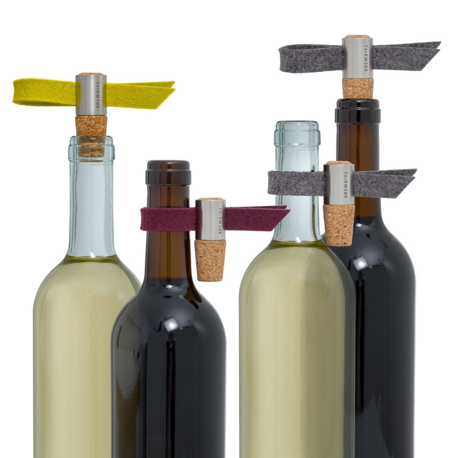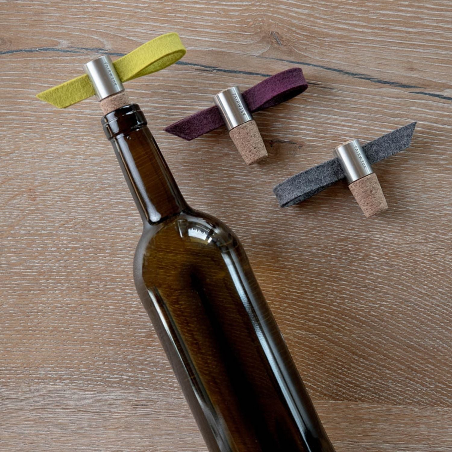 Cleverer Doppelnutzen: Stilvoller Verschluss und Tropfenfänger in einem. Die Farbvariante anthrazit/aubergine eignet sich perfekt für Rotwein und anthrazit/limone ist ideal für Weißwein oder die Farbwahl wird auf die Tischdekoration abgestimmt. Das praktische Duo besteht aus Naturkork und einem Filztropfenfänger. Der Filz kann ausgetauscht werden, zwei verschiedenfarbige Filzstreifen sind inklusive