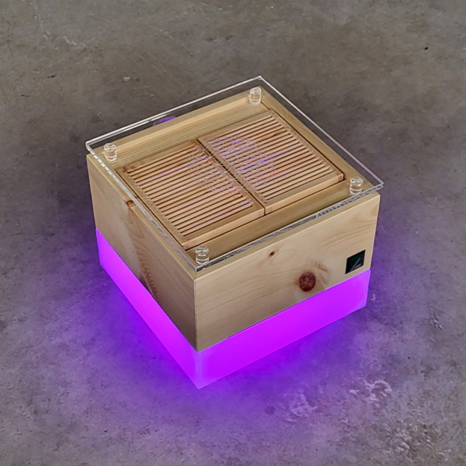 Die speziell entwickelten Lamellen aus Zirbenholz bilden das Herzstück des Kubus Junior. Durch das besondere Verwirbelungssystem wird die Luft regeneriert und mit den heimeligen Duftstoffen der Zirbe angereichert.