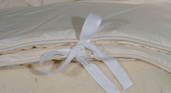Das sind überzeugende Argumente für dieses Überbett. Am meisten hat uns aber nicht ein Argument überzeugt, sondern ein Gefühl: Es ist das unbeschreiblich sanfte, feine Gefühl, geborgen in einem der tollsten Produkte, die uns die Natur schenkt, in den Schlaf zu gleiten! Unsere Übergangsbetten sind normalerweise handgeknüpft. Dabei wird das natürliche Schafschurwollvlies mit nur wenigen Stichen an der hochwertigen Baumwoll-Hülle aus naturnaher und heimischer Herstellung befestigt, sodass ein Herumrutschen in der Hülle verhindert werden kann.